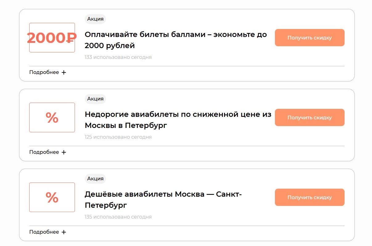 На платформе бронирования действуют специальные предложения и накопительная система баллов, которая делает путешествия выгоднее. Ниже приведены актуальные на текущий момент акции и детали дисконтной программы.
